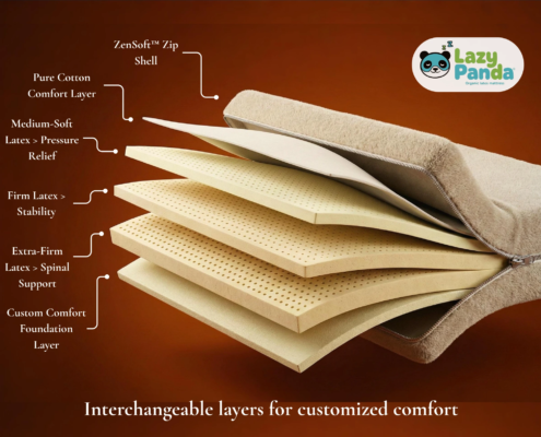 Introducing the Sandwich TriLayer 3D Interchange Latex Mattress, engineered for sleepers who love complete control over their comfort. This innovative mattress features three natural latex layers—70D, 80D, and 90D—each fully removable and interchangeable.